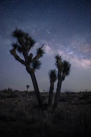 Joshua Tree National Park, California. Under the stars is one of my favorite places to be. I often set my camera up to take a Timelapse, bring a lawn chair to sit in, and watch the stars. There are times while taking Timelapse's that I'll see a shooting star but it'll be out of frame or it will happen between pictures being taken. This night was one of the lucky ones.