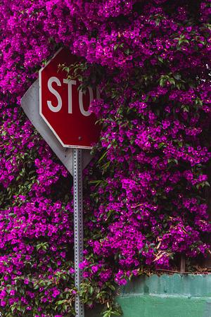 Los Angeles, California. There have been a lot of moments while I'm at a location shooting portraits and something else will catch my eye. This was one of those moments. Hidden in the hills of LA this sign was being swallowed by the flowers and I thought it made for a great metaphor.